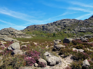 O dia começou bem cedo na Portela do Homem com o objetivo de realizar um trajeto à muito idealizado mas que ainda não o tinha concretizado, o dia seria longo e exigente e foi então tempo de por botas ao caminho e pouco depois da Ponte do Rio Homem fletindo à esquerda entrar na penosa subida do Peito da Escada até aos Prados Coveiros (Caveiros), toda a subida nos encanta com paisagens únicas sobre a Mata de Albergaria, a Mata de Palheiros e a Albufeira de Vilarinho da Furna, segui então em direção aos Prados da Messe onde a paragem para hidratar e ingerir algo leve é sempre obrigatória, continuando dirigi-me então a Porta Ruivas, aqui tudo é de uma beleza extrema, o Cume de Porta Ruivas, a pequena cabana, o miradouro sobre Belas Brancas, as Fechinhas, a Rocalva e a Roca Negra, é daqueles locais de onde não nos apetece sair... Mas lá teve que ser e passando pelo Curral dos Bezerros com a sua original cabana segui em direção ao Alto de Cidadelhe e depois até ao miradouro do Outeiro do Pássaro sobre o fantástico circo glaciar de Cocões de Coucelinho, admirando também lá bem no fundo do horizonte o Lago Marinho e a sua vizinha Lagoa, segui então até aos Currais de Lamas de Homem e fletindo à esquerda fui em direção ao Curral das Abrótegas, aqui fiz mais uma pequena pausa antes de iniciar a longa descida do Trilho da Minas dos Carris até ao meu ponto de partida na fronteira da Portela do Homem.